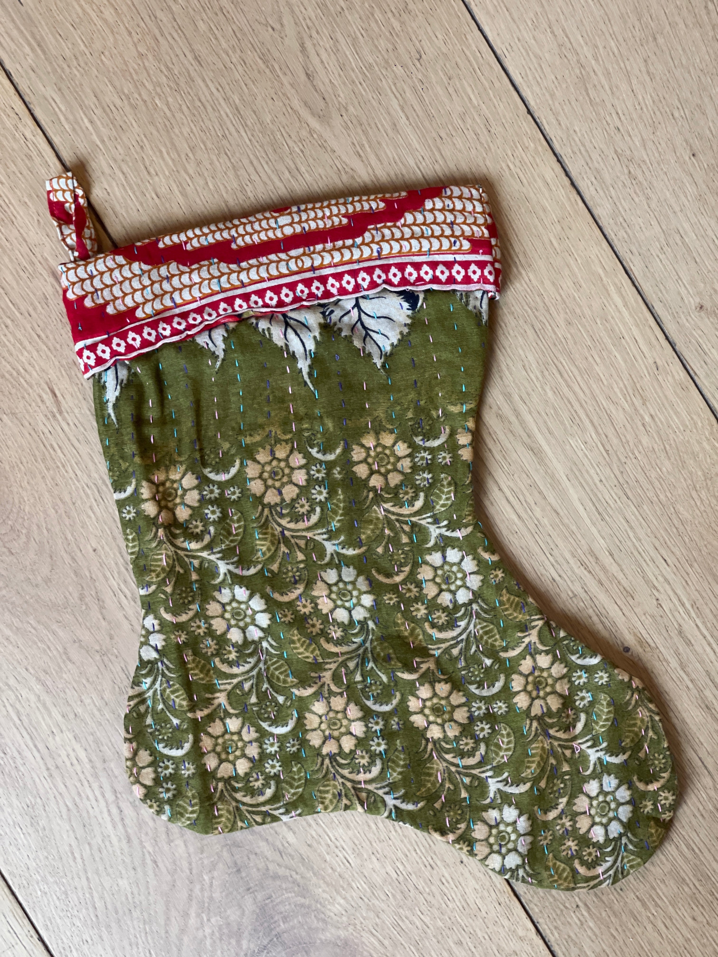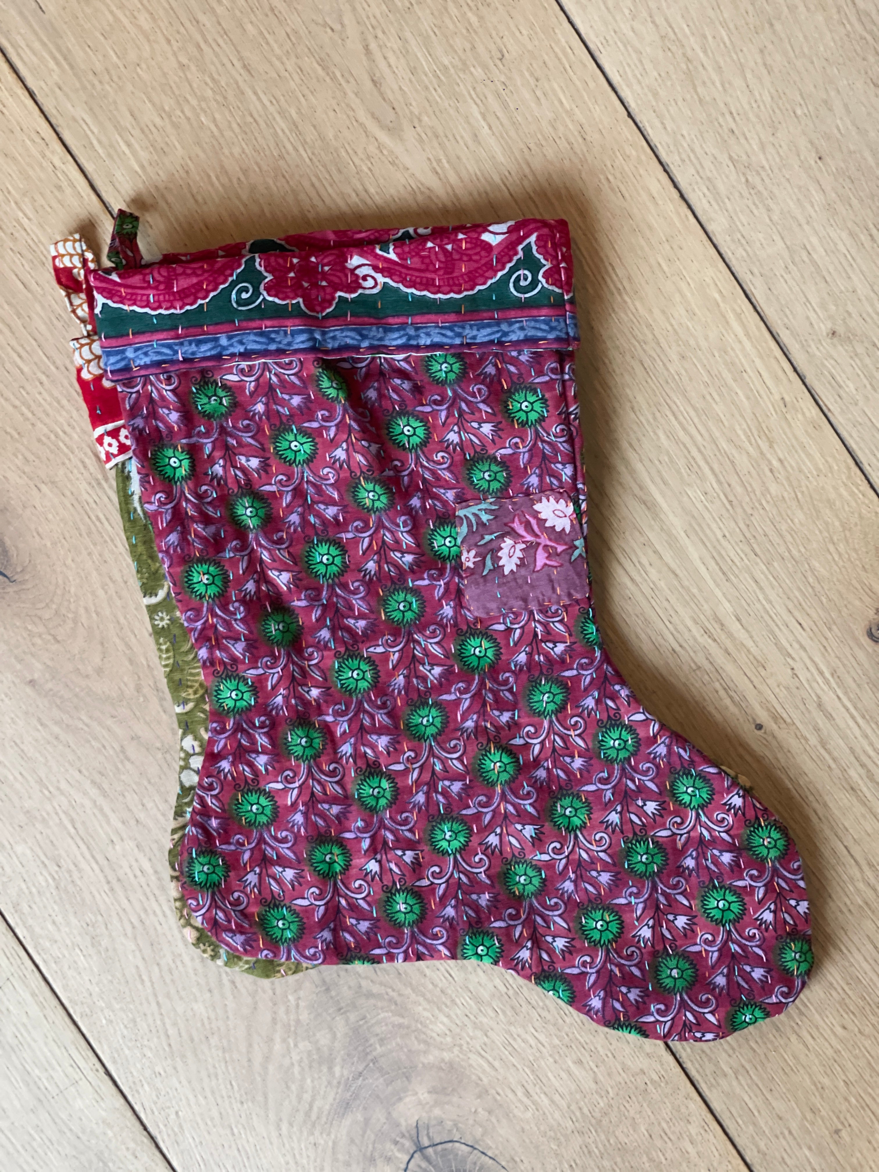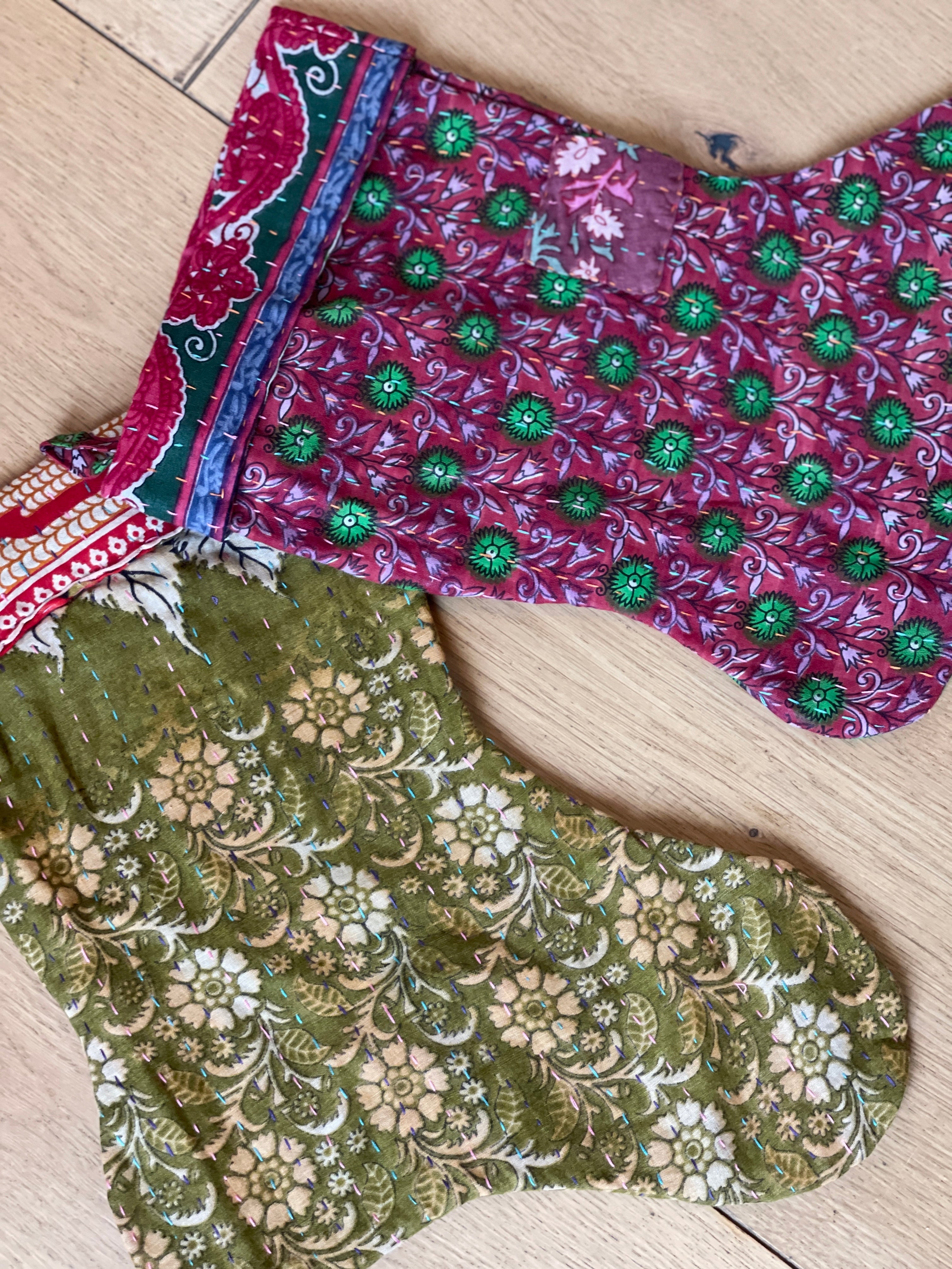 De magnifiques chaussettes de noël en kantha vintage ajoutent du sens aux fêtes de fin d'année.