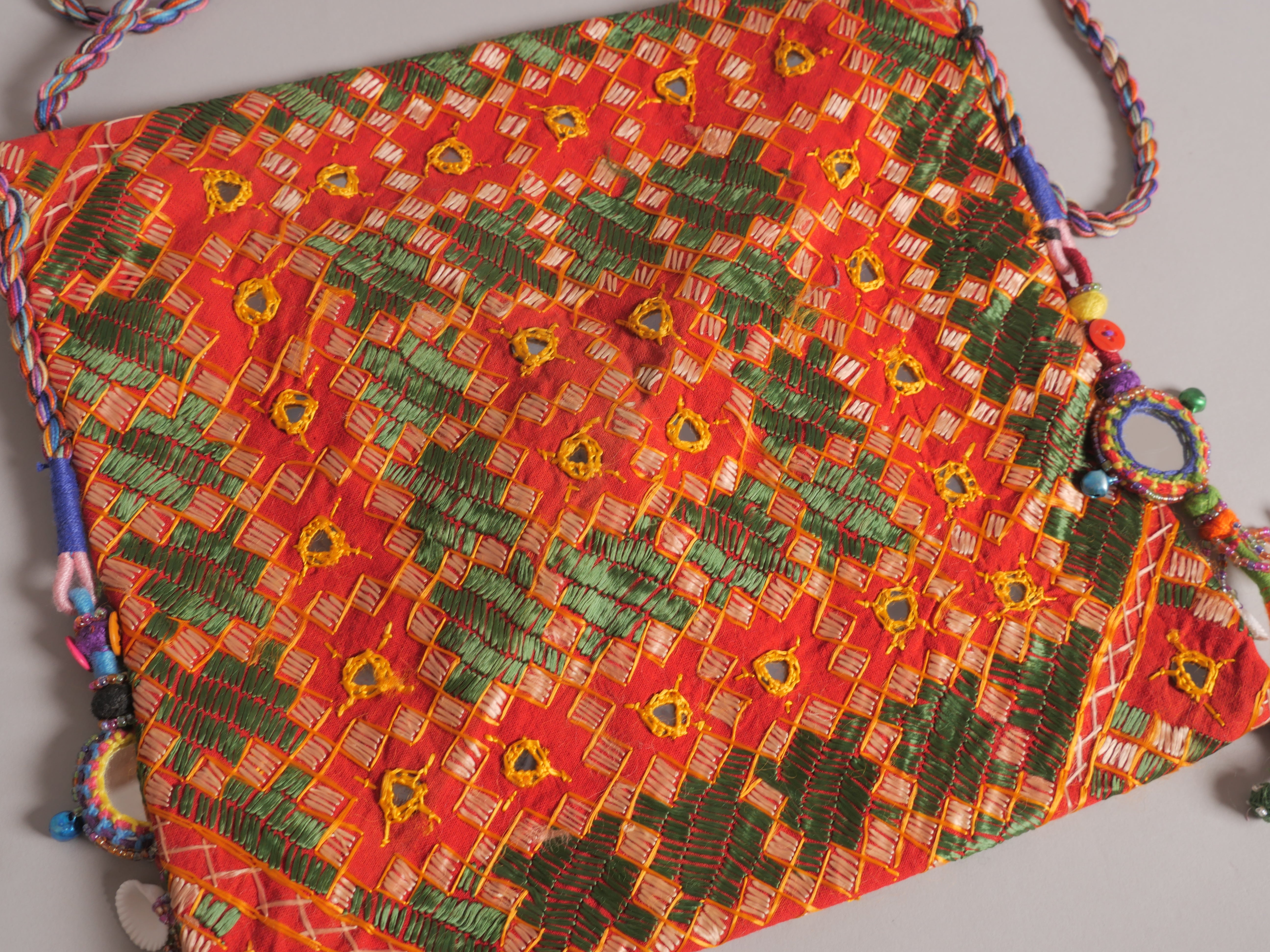 En detail : 30 x 25cm avec un anse de 60cm . Coton avec des miroirs.