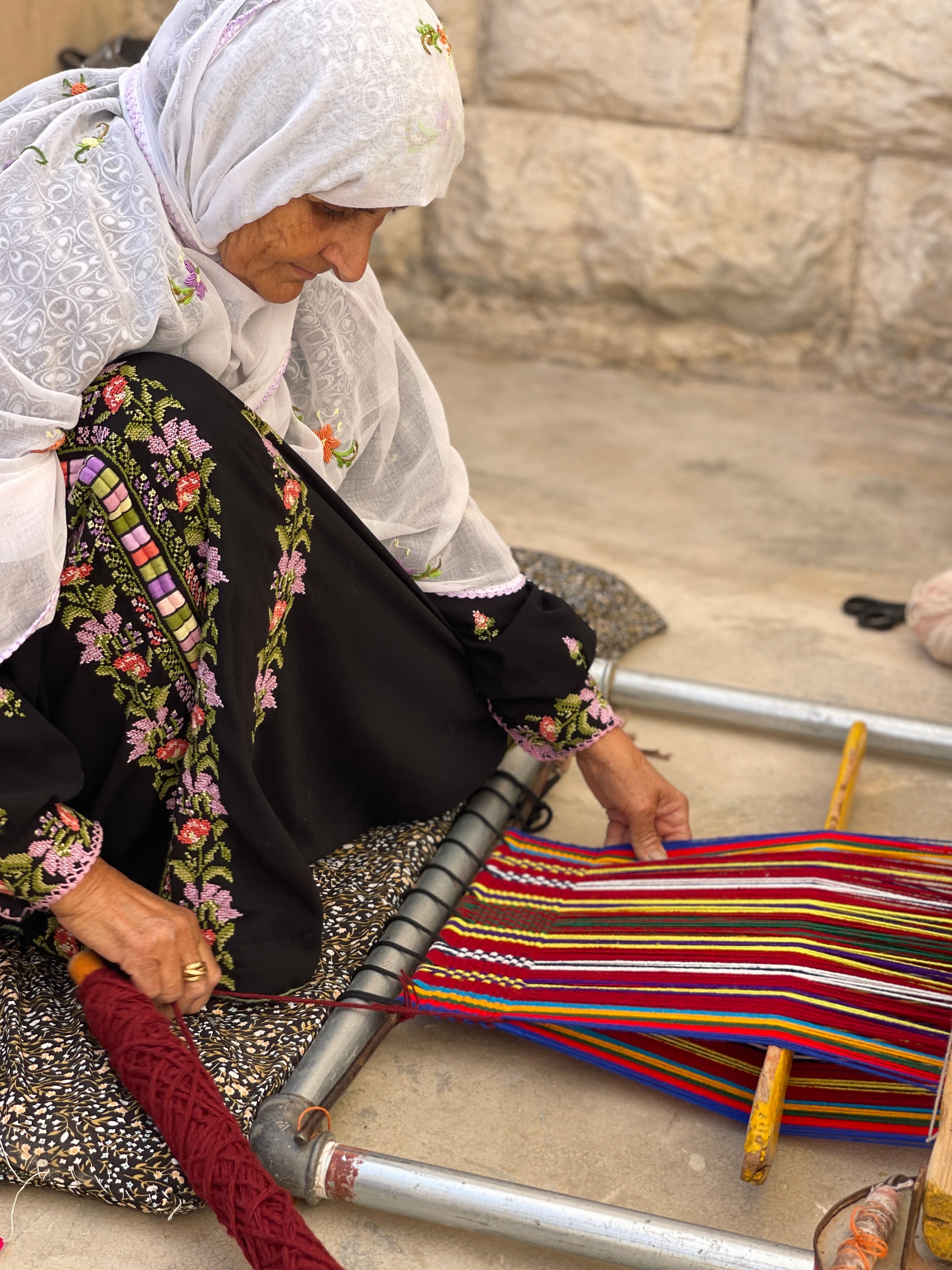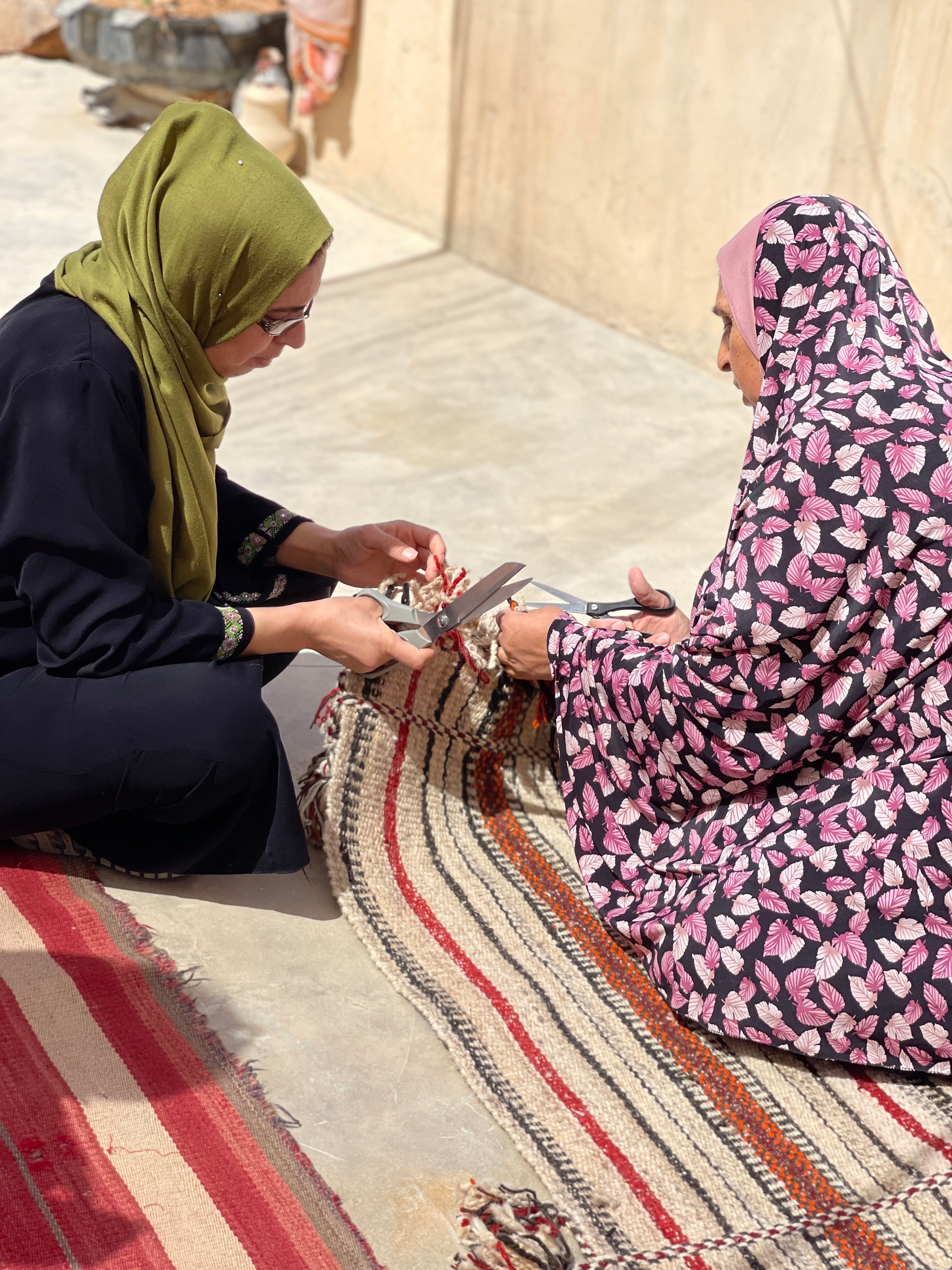 Le style et les couleurs sont traditionnels. Toutes les étapes du processus de production sont 100% palestiniennes. Les moutons sont élevés et tondus dans la région. Les femmes rassemblent et lavent la laine à de nombreuses reprises, puis la filent en fil et la préparent pour le tissage. Historiquement, c'était une profession principale pour les femmes. Chaque foyer avait des tapis fabriqués par les femmes de la famille.